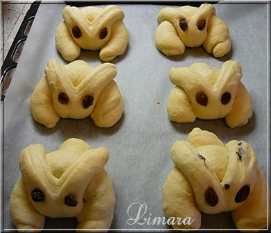 Tojással lekentem a megkelt nyuszikat, majd 180 fokos sütőben kb. 18 perc